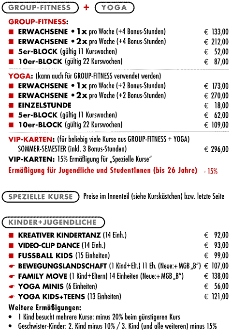 ALLE Preise sind - sofern nicht anders angegeben - Semesterpreise