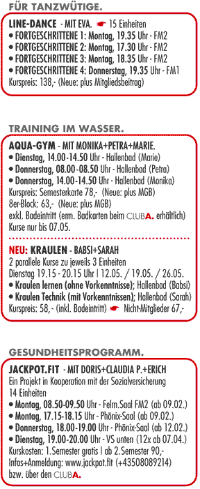 Nähere Infos beim CLUB